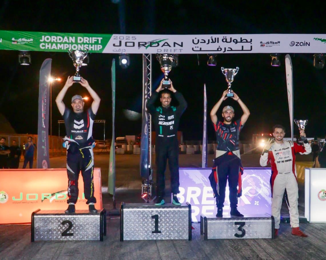 ونجح المتسىابق المصري كريم هاني - (بي ام دبليو إي ‏‏‏46)، في اعتلاء منصة التتويج بالمركز الأول بعد أداء مبهر في النهائي، ‏فيما جاء المتسابق الأردني رأفت ‏هارون (تويوتا جي تي 86) ثانيا، وحل المتسابق الأردني عبد الله حمادة (بي أم دبليو إي 92) ثالثا، بينما ‏ جاء المتسابق الأردني مؤيد يوسف (تويوتا جي تي 86) رابعا، والذي حسم لقب بطولة الأردن لسباقات الدرفت للعام الحالي 2025.